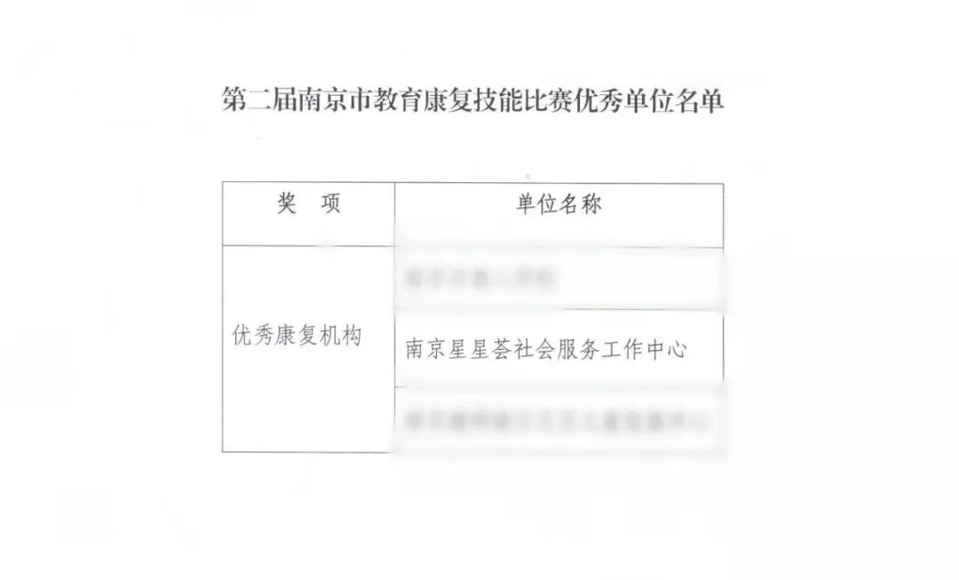 南京星星荟社会服务中心获得南京市优秀康复机构的荣誉称号!