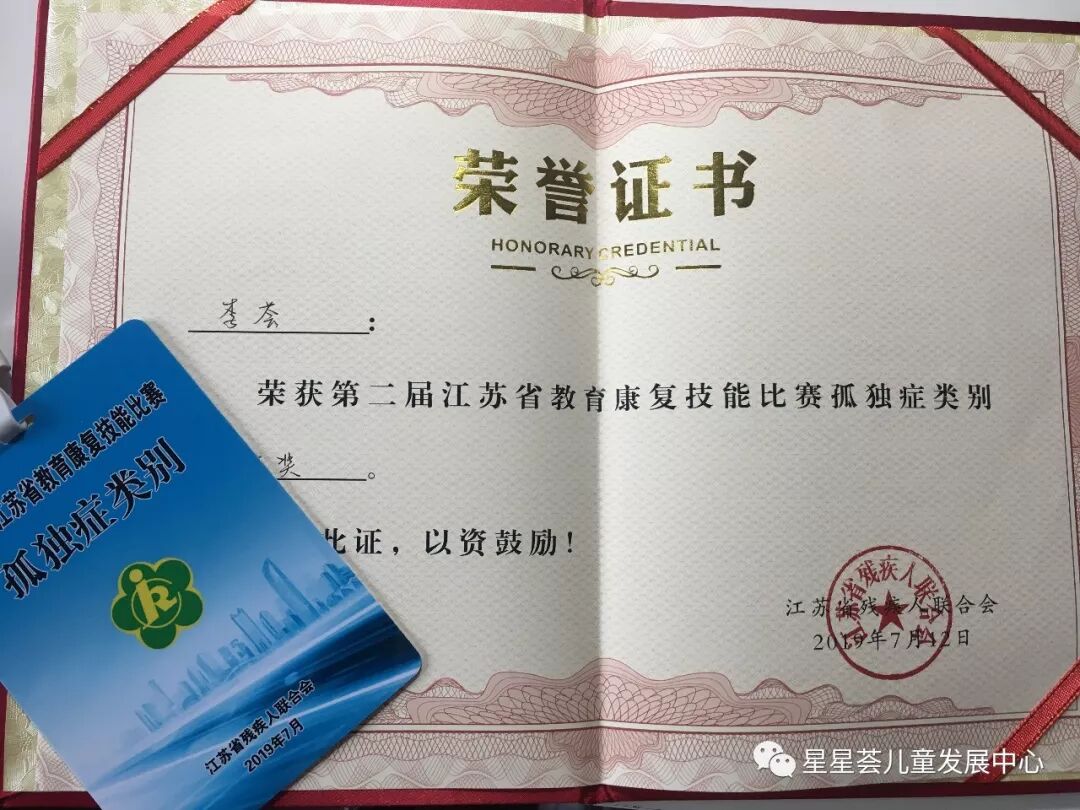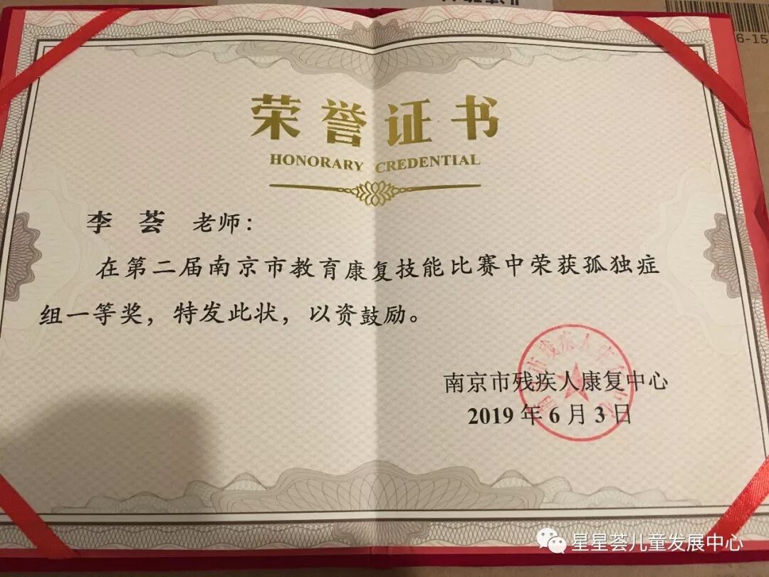 热烈祝贺南京星星荟社会工作服务中心 李荟老师 在南京市教育康复技能比赛中取得 孤独症组一等奖 的佳绩,并代表南京市参加江苏省教育康复技能大赛,并获得孤独症组优秀奖,展现风采!