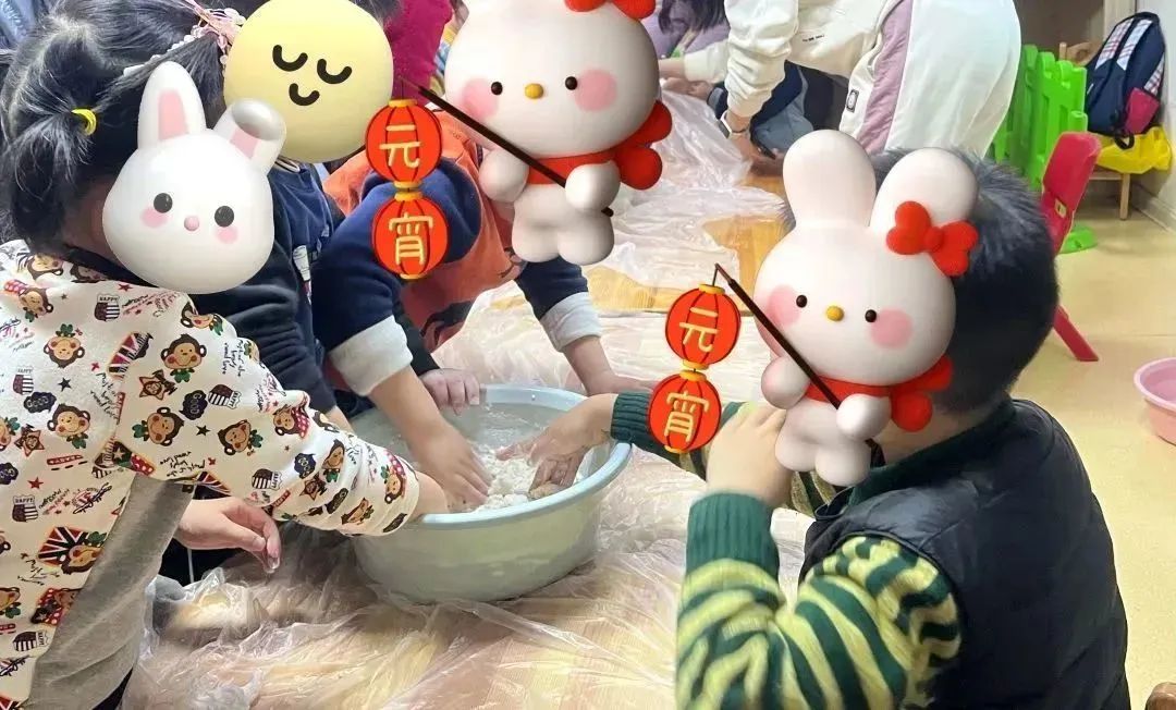 随着一首耳熟能详的《卖汤圆》,小朋友们开始如火如荼地制作汤圆。小朋友们在老师的帮助下,将面粉和水混合起来进行和面,和好面后揉成面团,再擀平,包上豆沙馅,这样一个个圆溜溜的汤圆就做好啦!