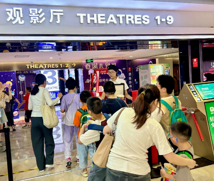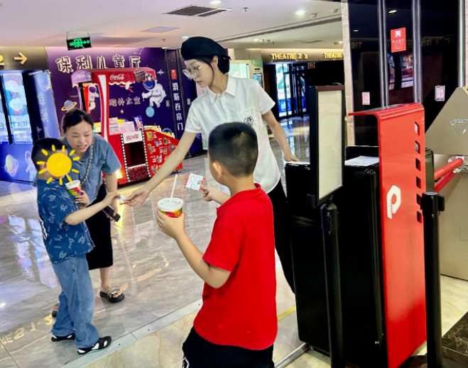 随着电影放送的提醒,小朋友拿着可乐和爆米花,带着自己的电影票排队准备检票。队伍中,小朋友们对电影充满了期待,很多小朋友都是第一次来到电影院看电影,甚至所有小朋友都是第一次自己坐地铁来到电影院看电影。对于每一个小朋友来说今天都将会是一次难忘的冒险,一次心灵的旅行。