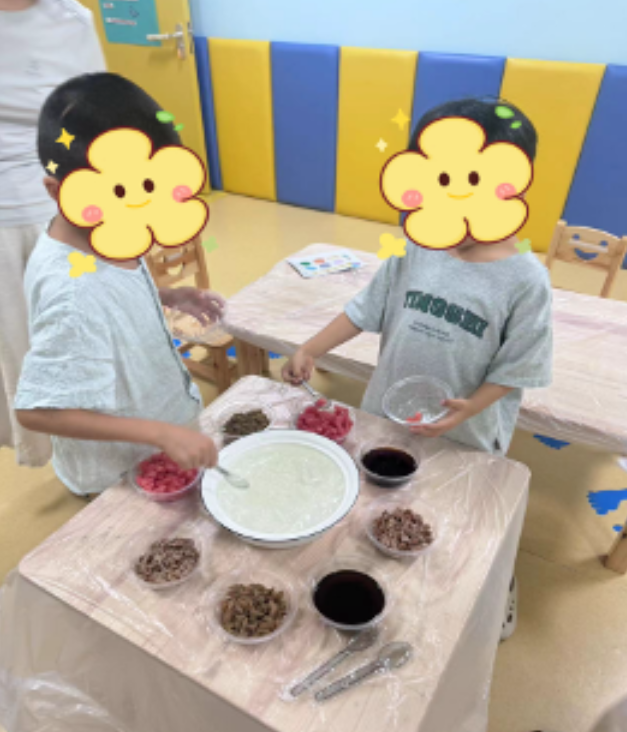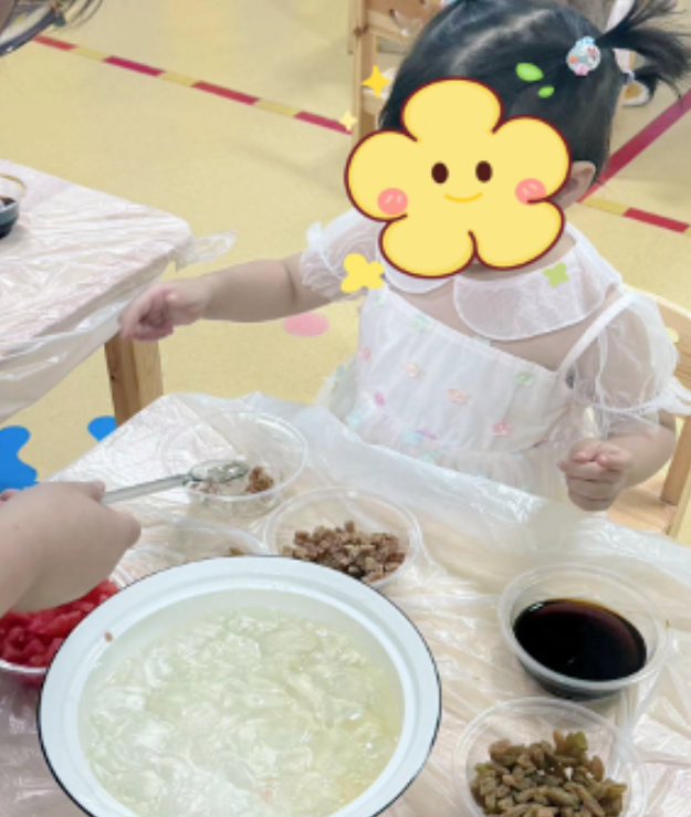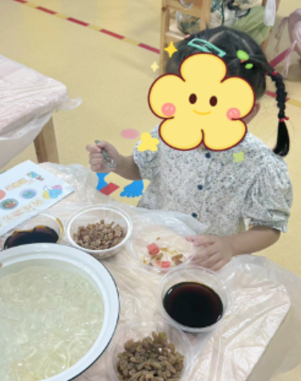 闯关的过程中也不要忘记补充能量哦!夏天怎么可以少得了冰粉呢,自己做的冰粉更符合自己的口味哦,让我们看看小朋友们都给自己加了哪些好吃的调料呢。