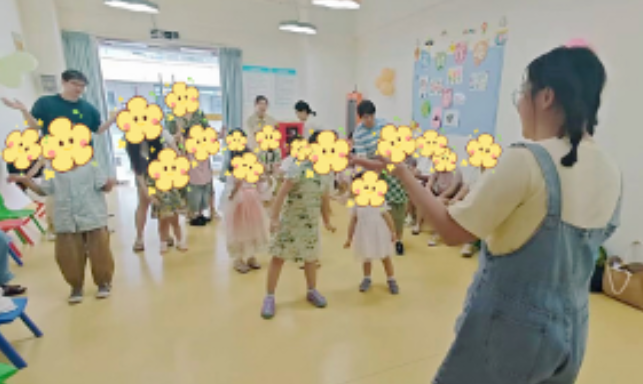 当当!集体舞时间到!小朋友们和老师一起手拉手,温馨的场面让我们一起来欣赏一下吧!