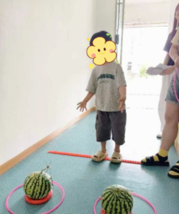 哐啷哐啷,又是哪个赛场传来了声音?原来是西瓜保龄球大赛!大西瓜成为了小朋友们的拿手“武器”,看看谁能砸倒最多呢?